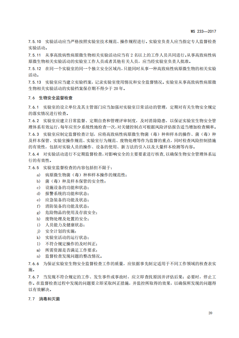 5.7.1病原微生物实验室生物安全通用准则WS 233-2017