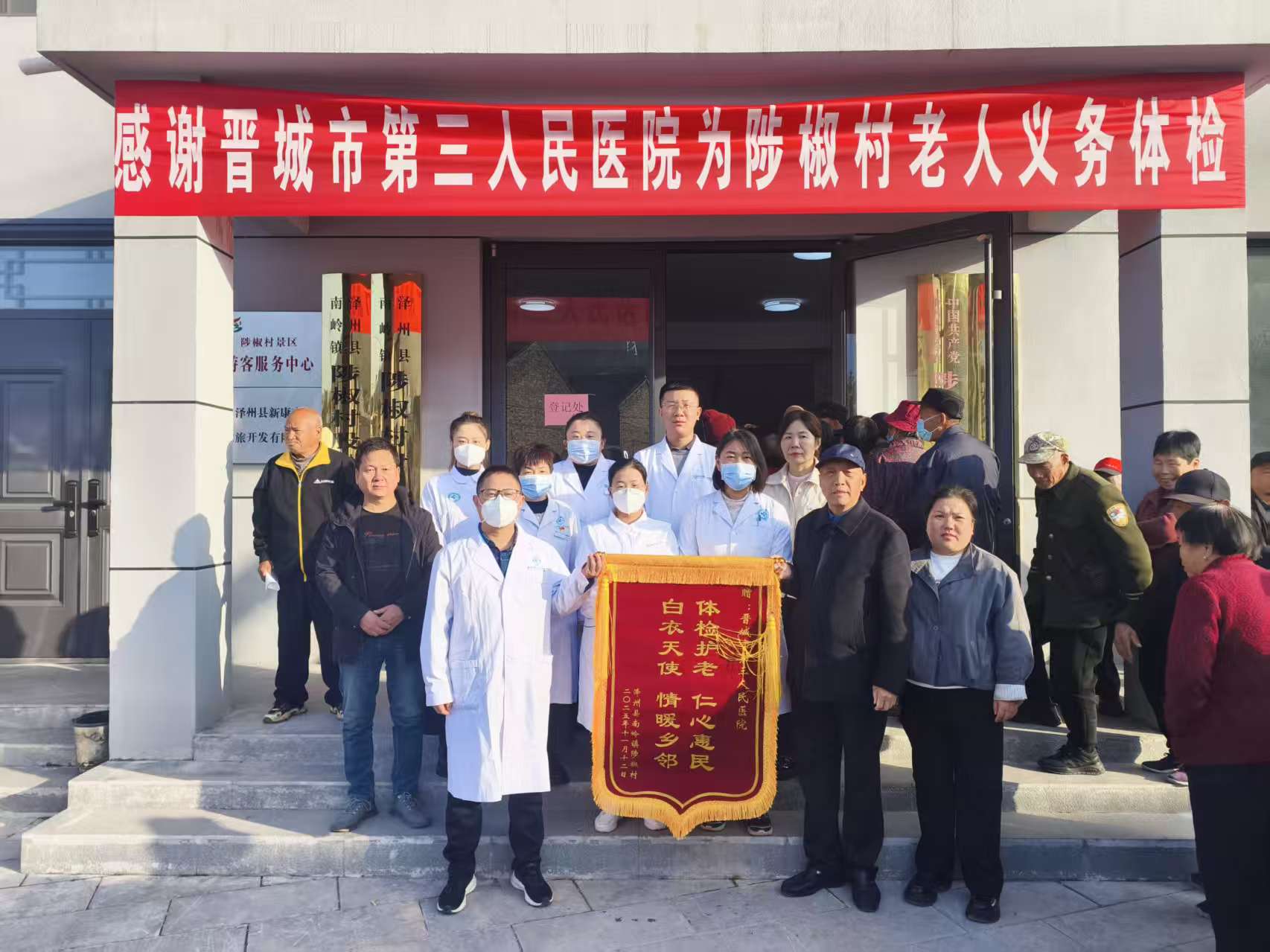 此次义诊活动共服务村内老年人85人次,发放健康资料400余份,不仅为基层老人送上了便捷的医疗服务与健康关怀,更以实际行动践行了公立医院的公益属性,得到了陟椒村村民的一致认可与好评并收到村民赠送的锦旗一面。接下来,我院将继续履行公立医院使命,持续聚焦基层群众健康需求,开展更多惠民义诊活动