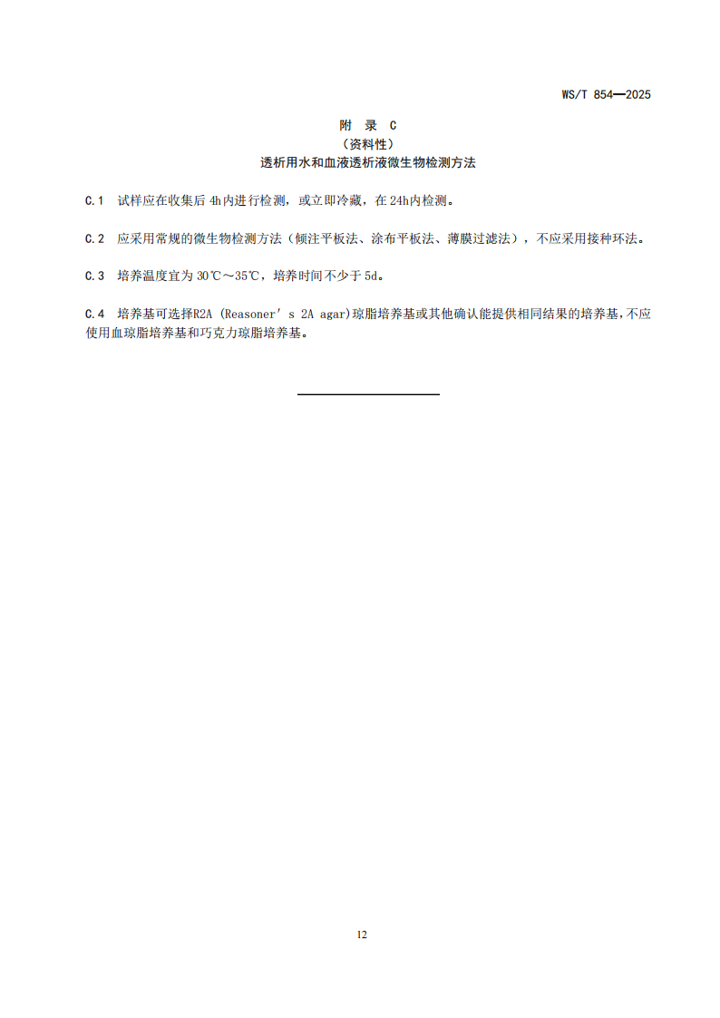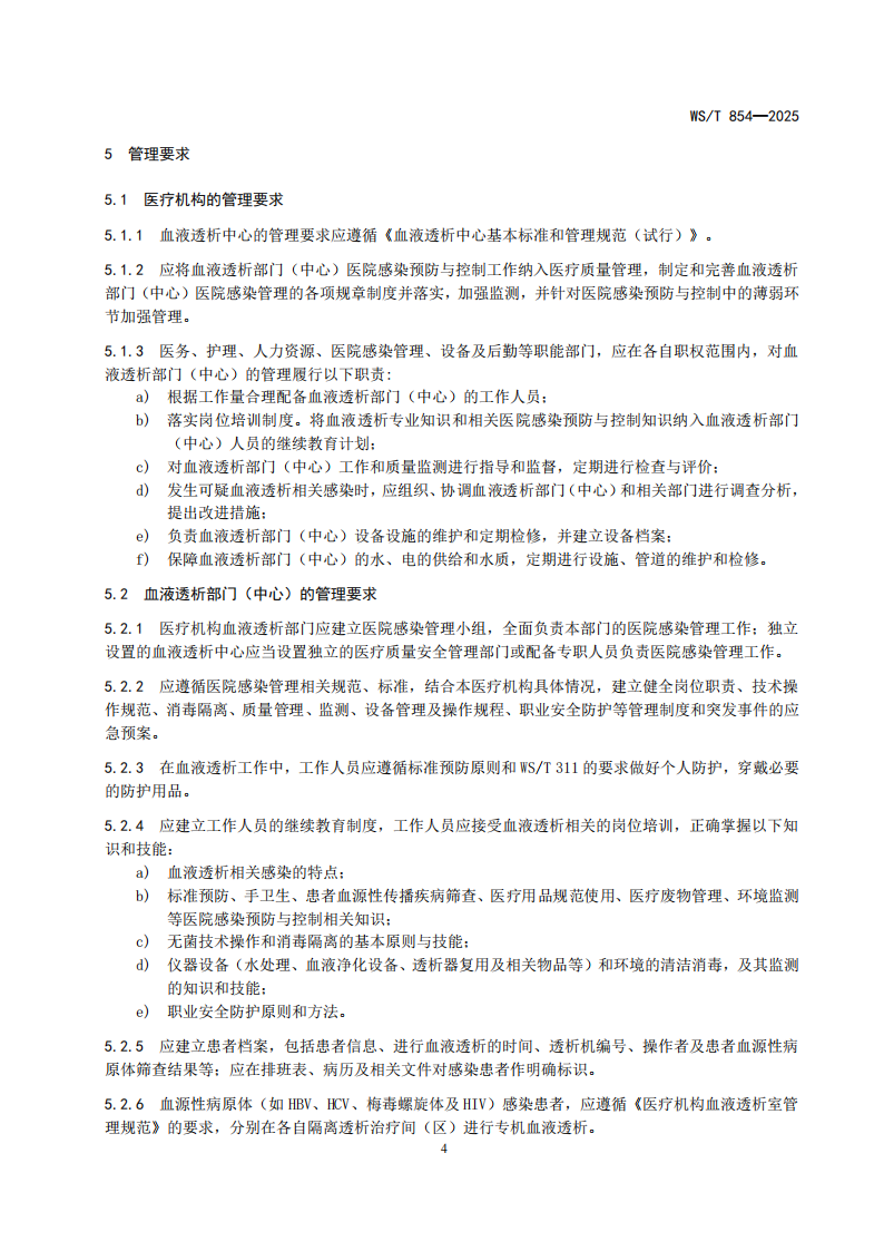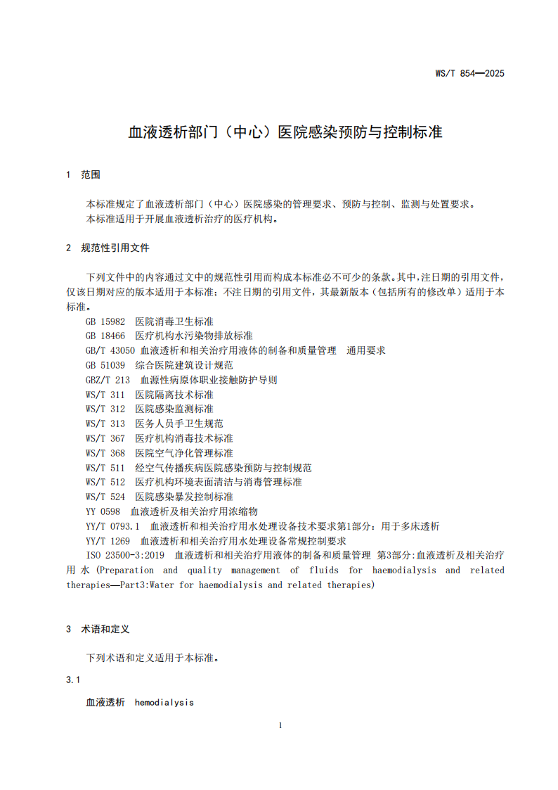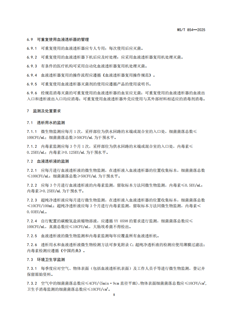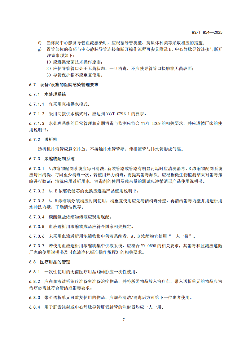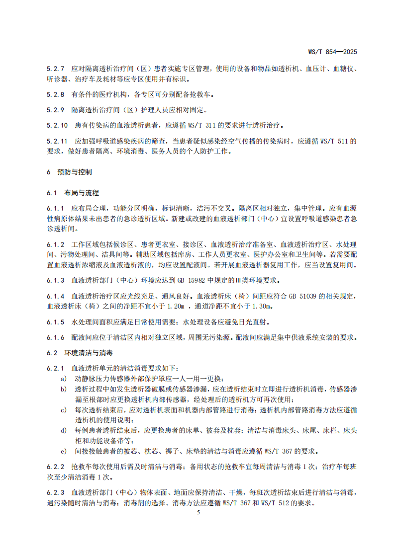 5.6.1血液透析部门(中心)医院感染预防与控制标准WST 854-2025