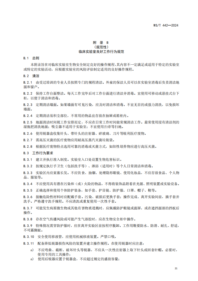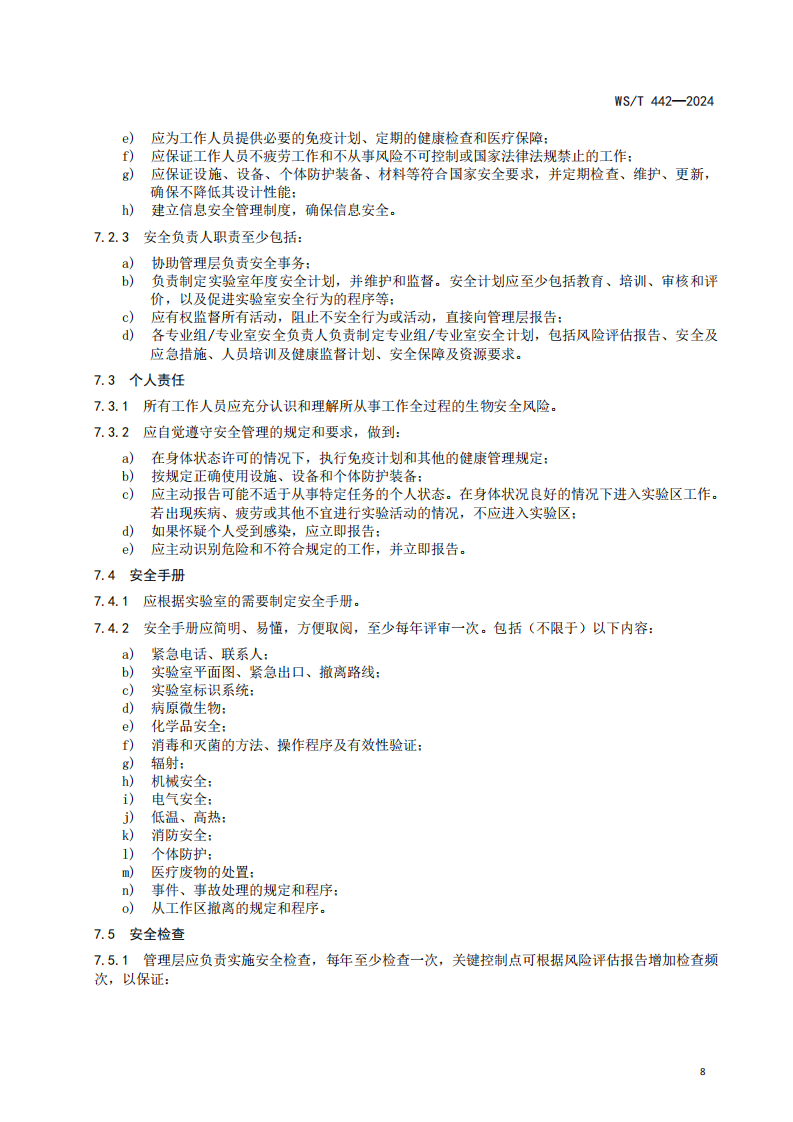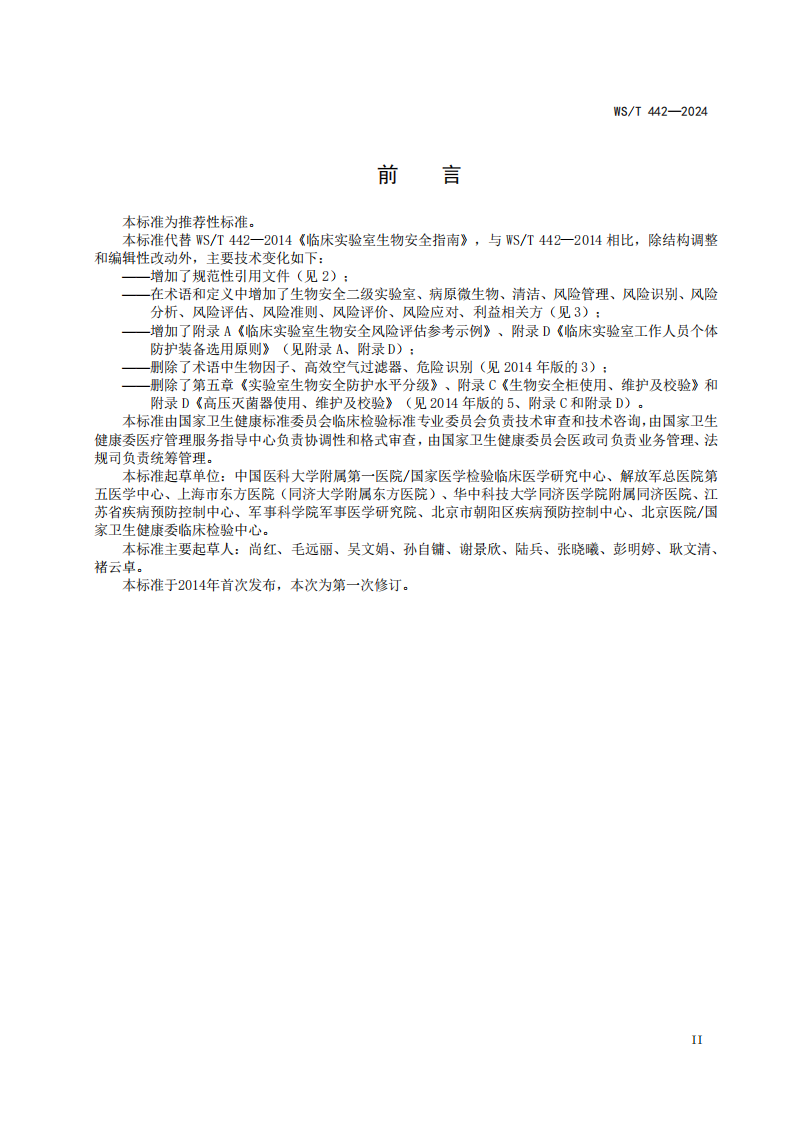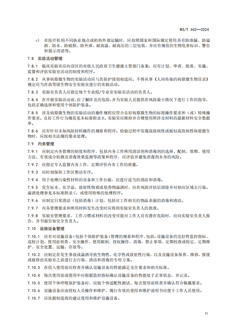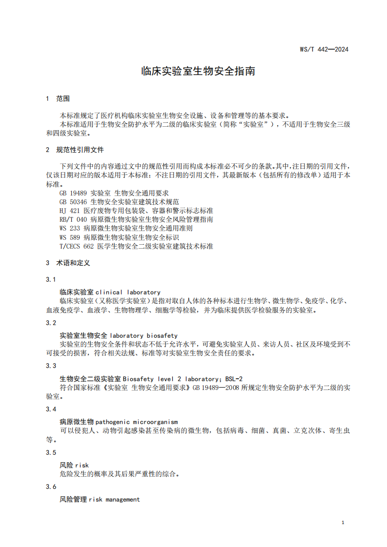 5.7.2临床实验室生物安全指南WS∕T442-2024