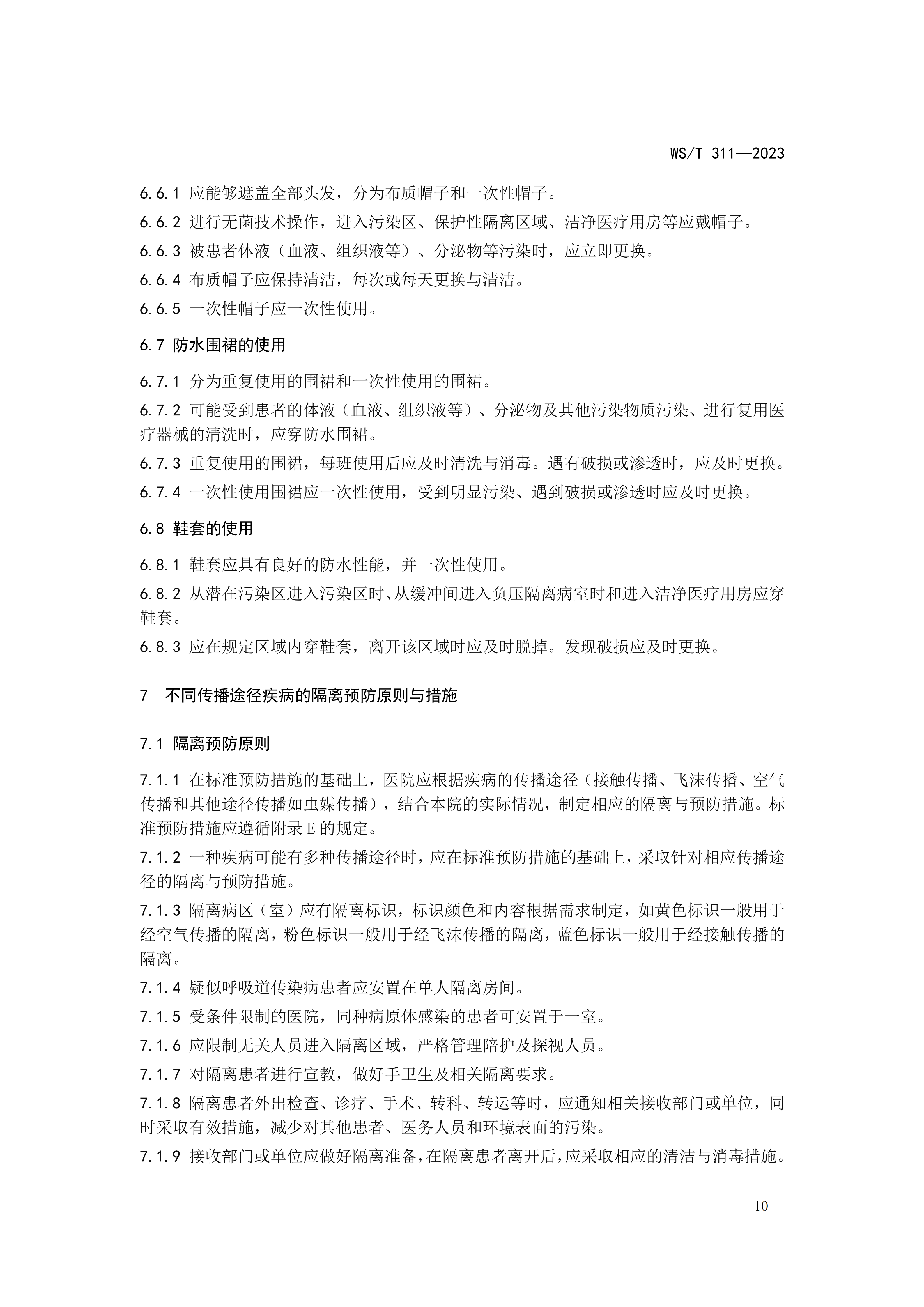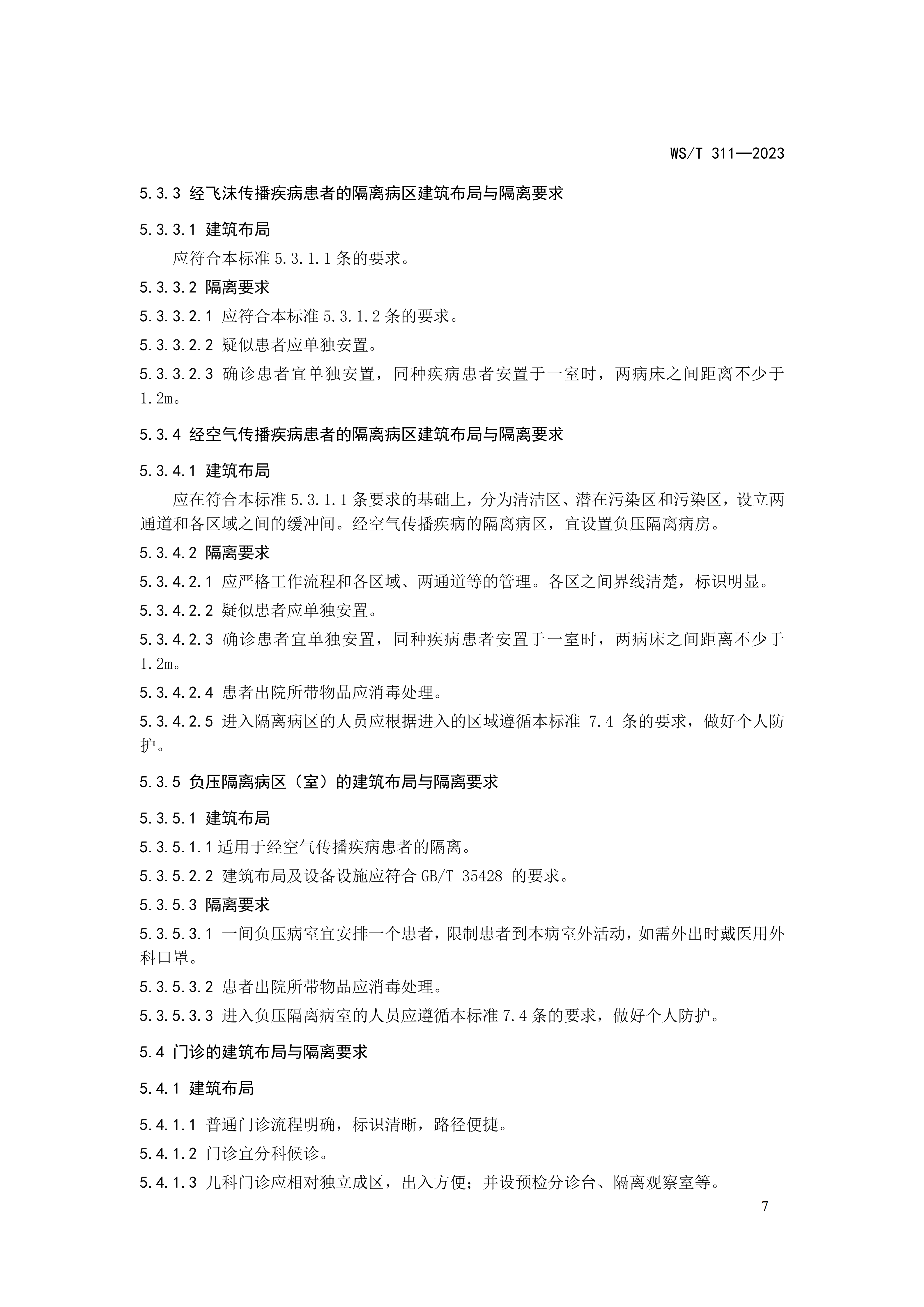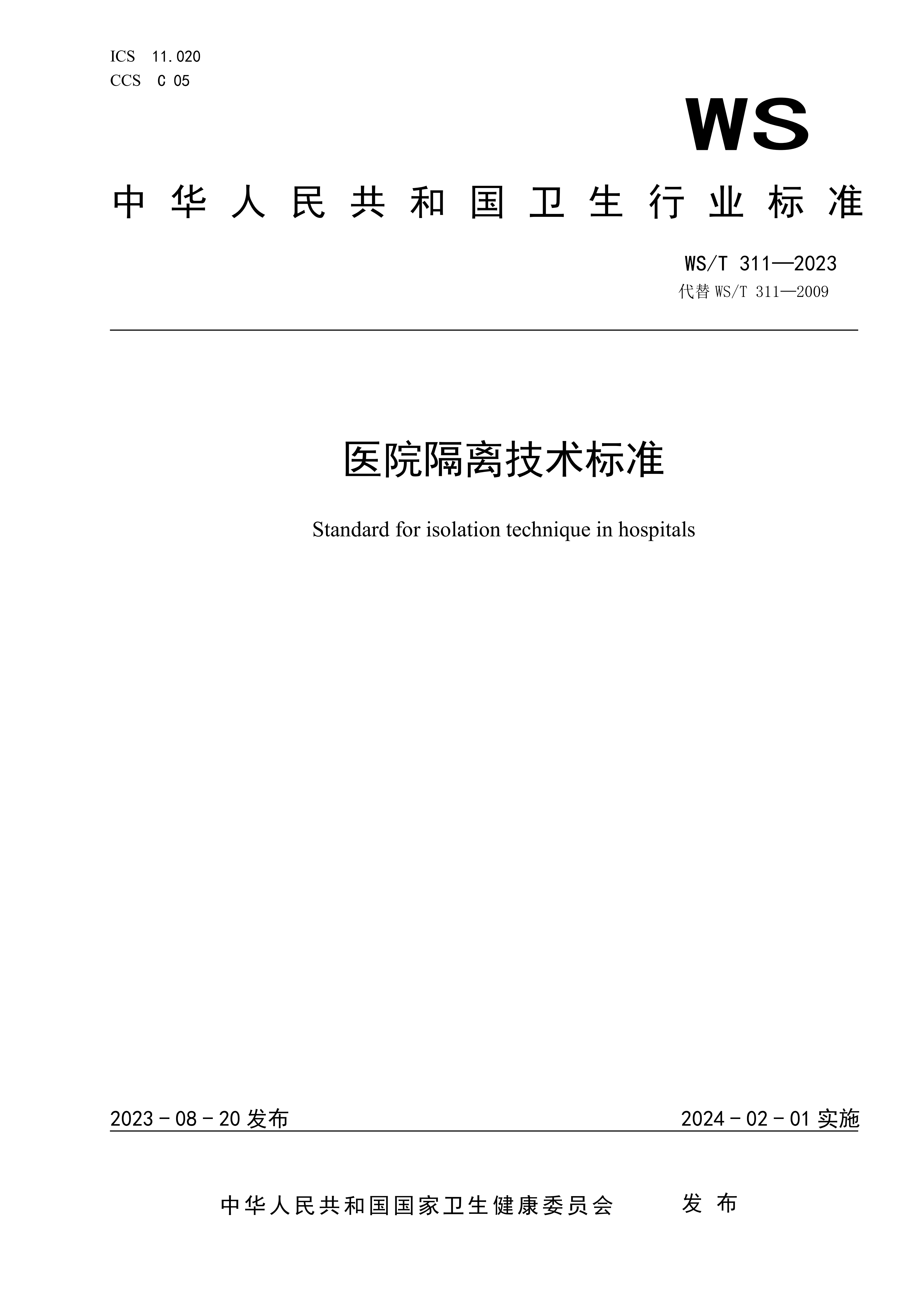 6.13医院隔离技术标准WST 311-2023