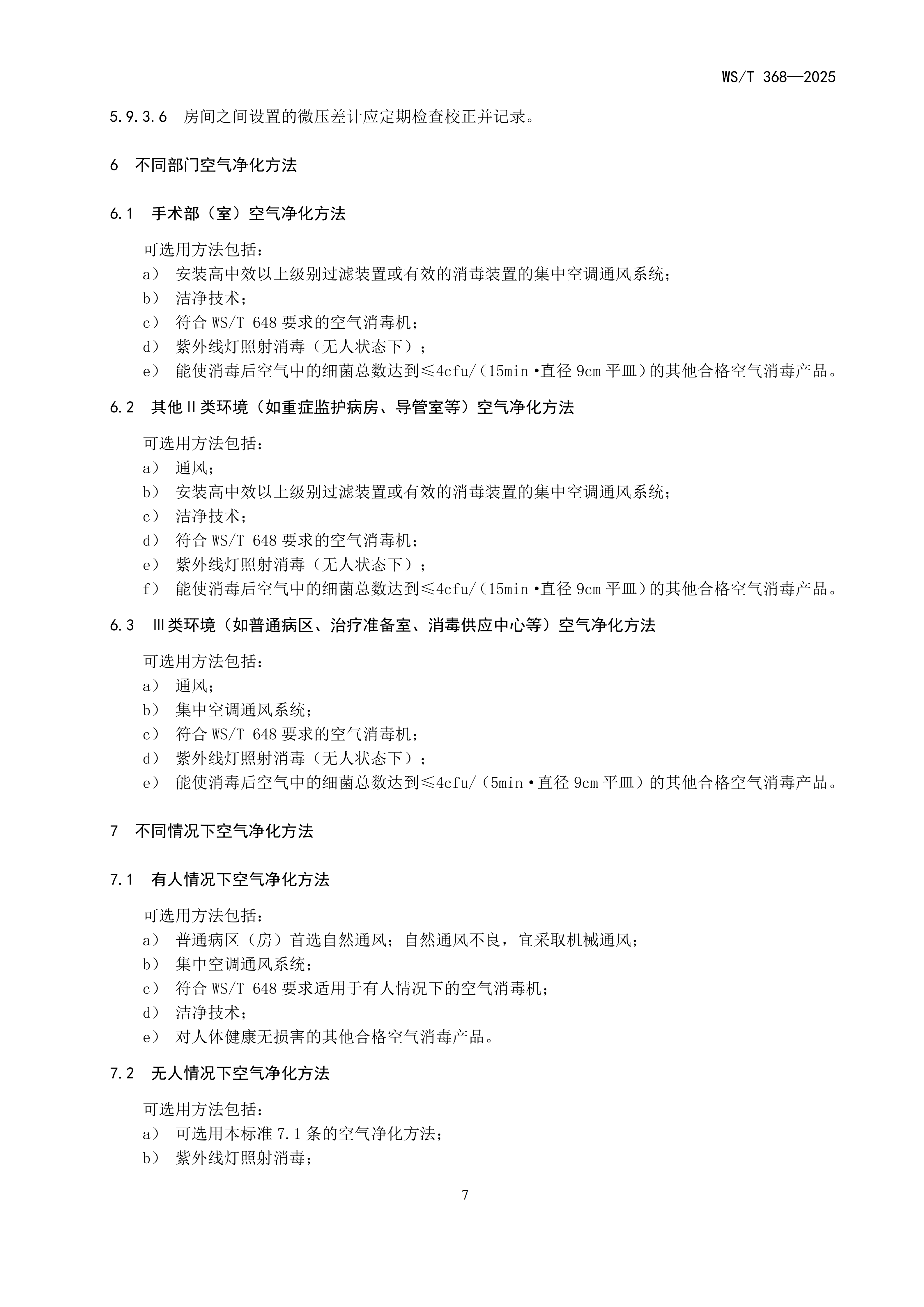6.15医院空气净化管理标准WST368-2025