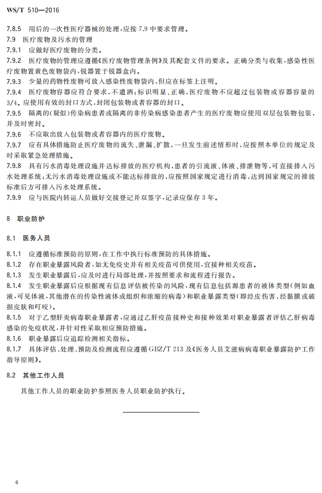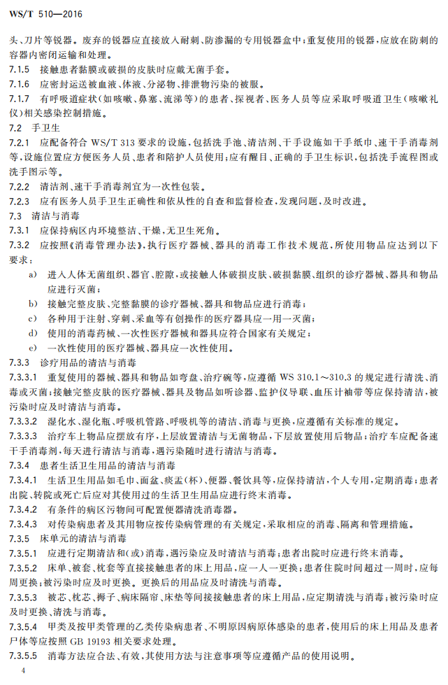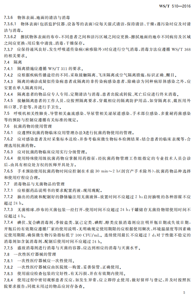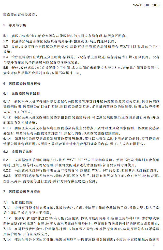 5.3.1病区医院感染管理规范WST510-2016