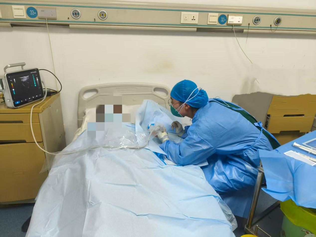 近日,我院护理团队成功完成首例超声引导下中等长度导管(简称“中长导管”)置入术,标志着我院静脉治疗水平迈上了一个新台阶。本次接受中长导管置入的是一位需要长期抗结核治疗的患者,在静疗专科护士的精心评估和准备下,借助超声系统精准定位,操作娴熟,顺利将导管置入最佳位置,整个过程患者感受良好,无任何不适。